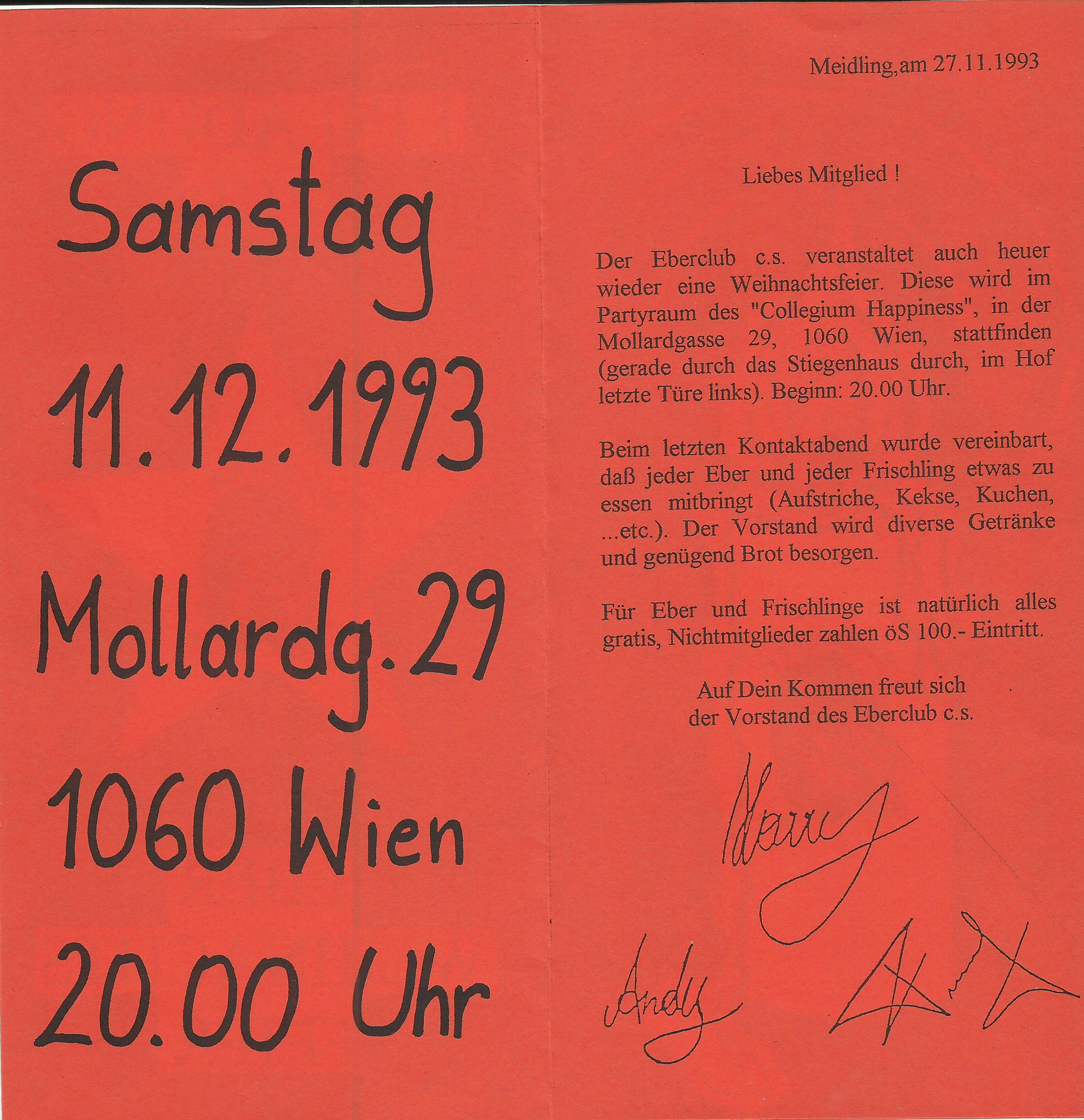 11.12.1993: Eber-Weihnachtsfeier, Mollardgasse